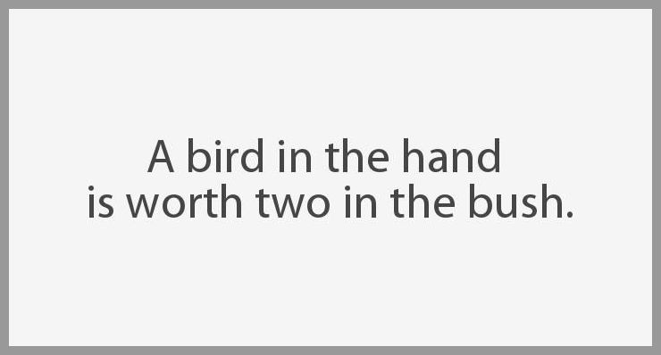 For example in case of a relationship, if a man takes his wife for granted and do not give her time and is always busy with completing projects and. Because people dont chase birds much anymore and a hand in the bush is much better. One 1530 statement by hugh rhodes reads better one byrde in hande than ten in the wood. There are various examples of the idiom appearing in early print dating back to the 16th century; A bird in the hand is worth two in the bush.